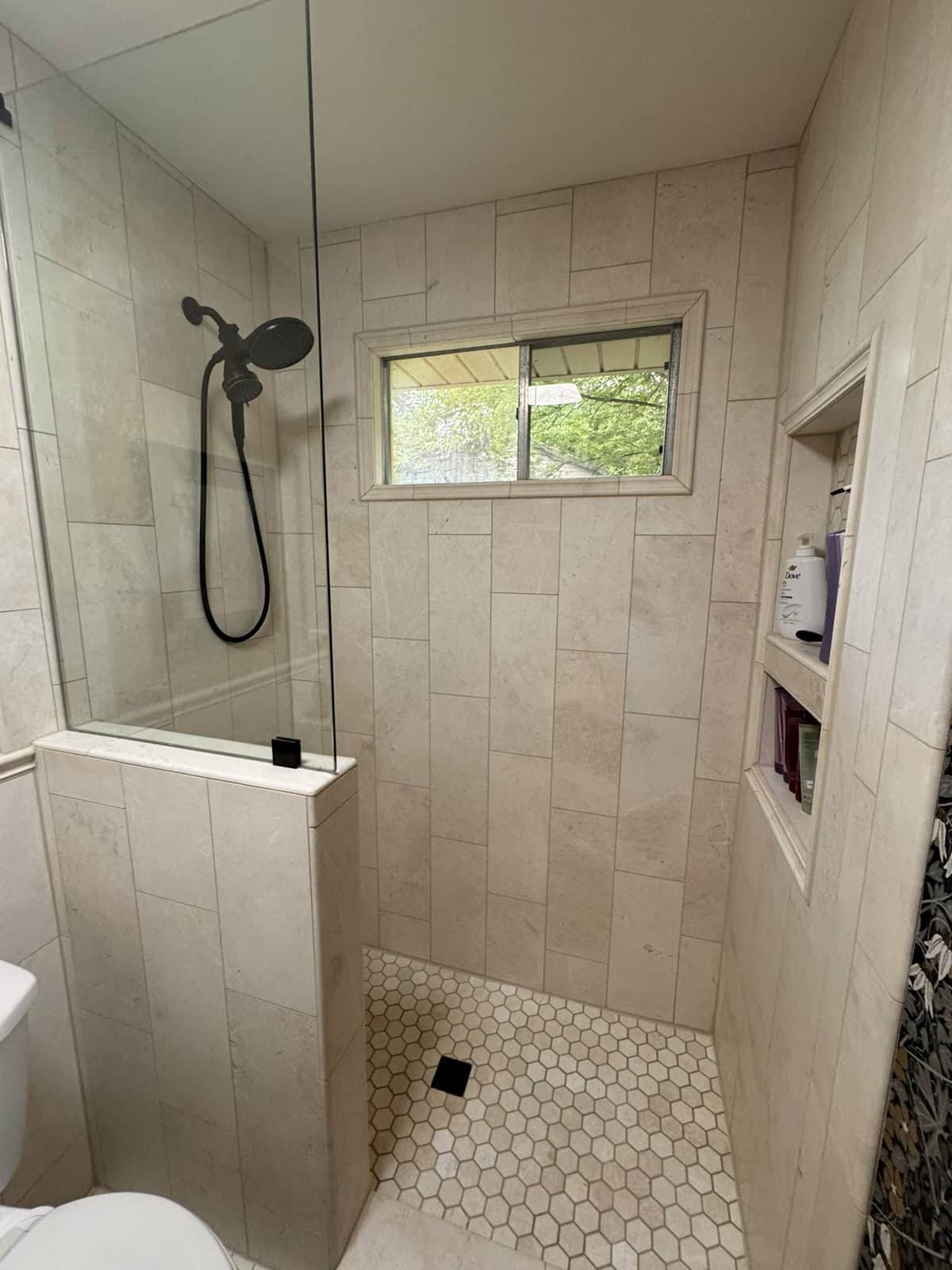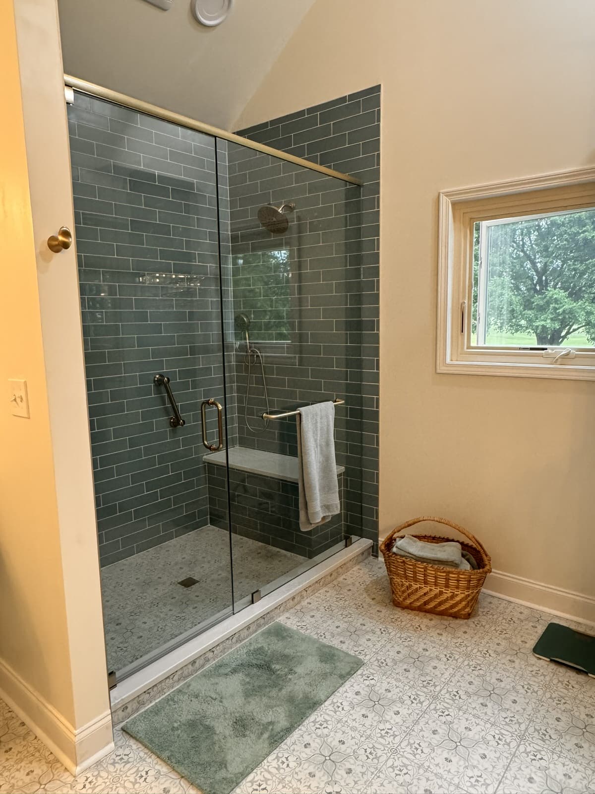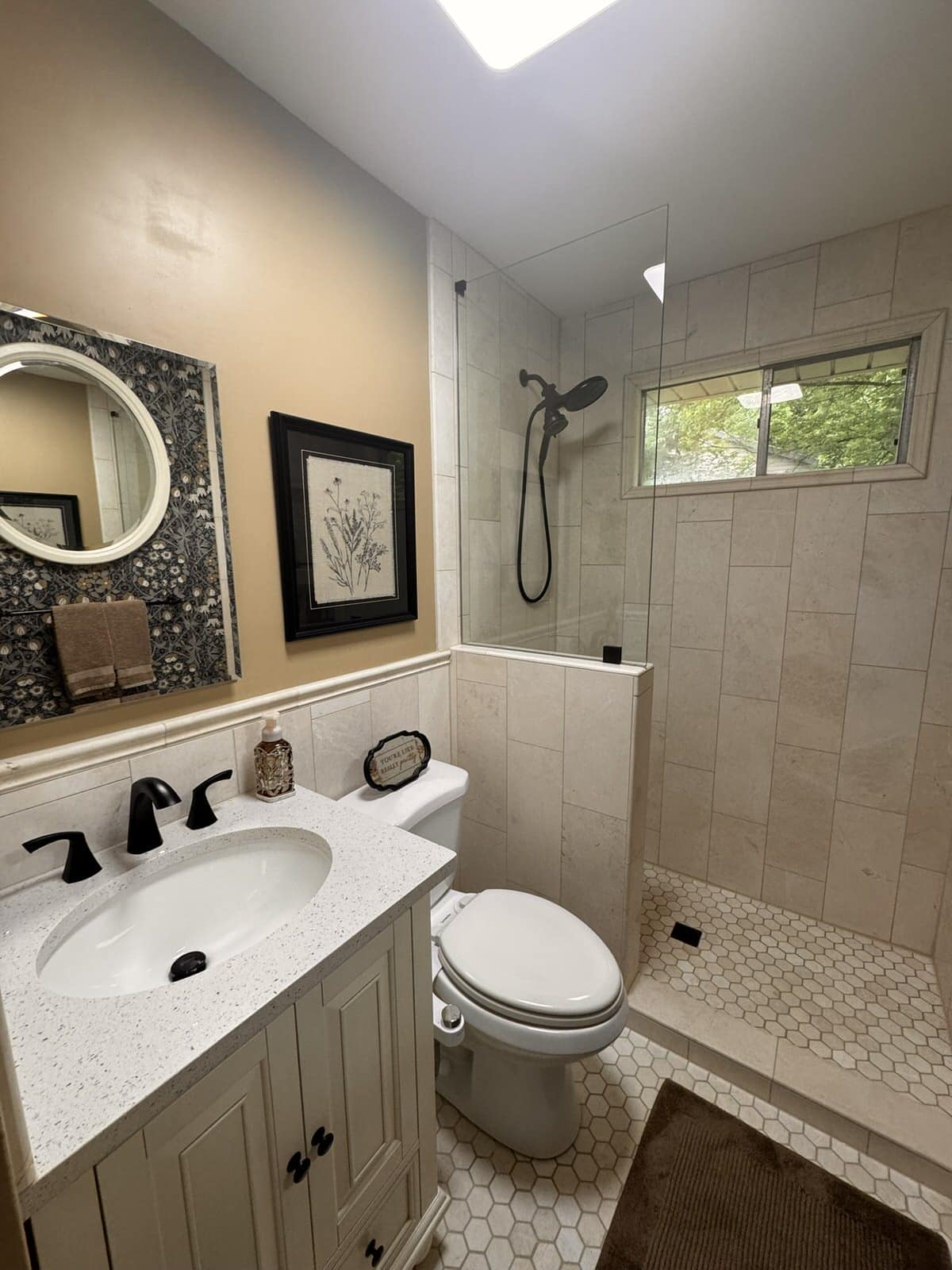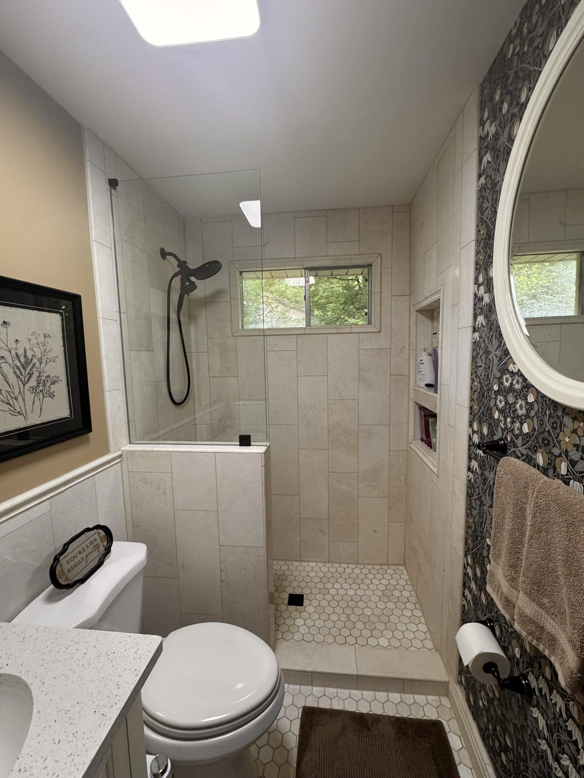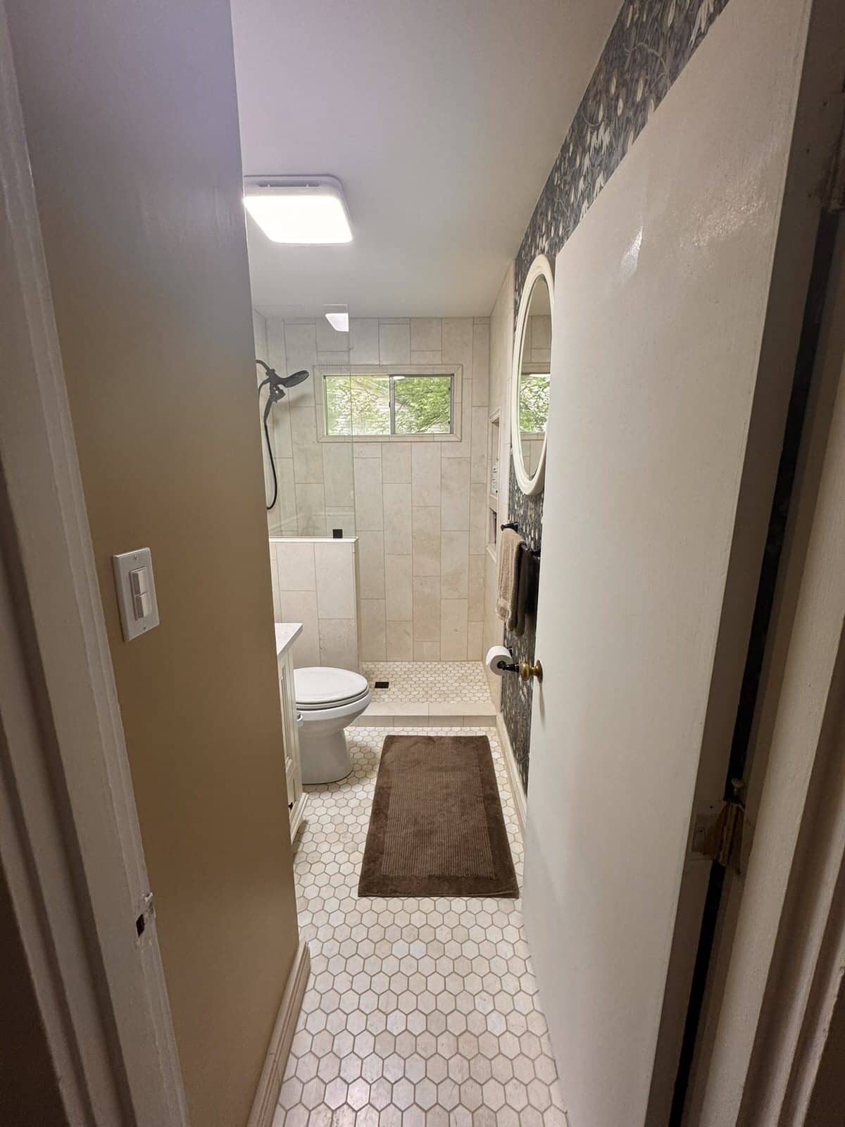 They transformed a 60-year-old moldy cave of a bathroom with a rotten floor to a luxurious and modern oasis. The entire team has great ideas and are very creative. The design choices included a floating vanity, pocket door, and removing a useless wall to make a tiny bathroom seem a lot larger.