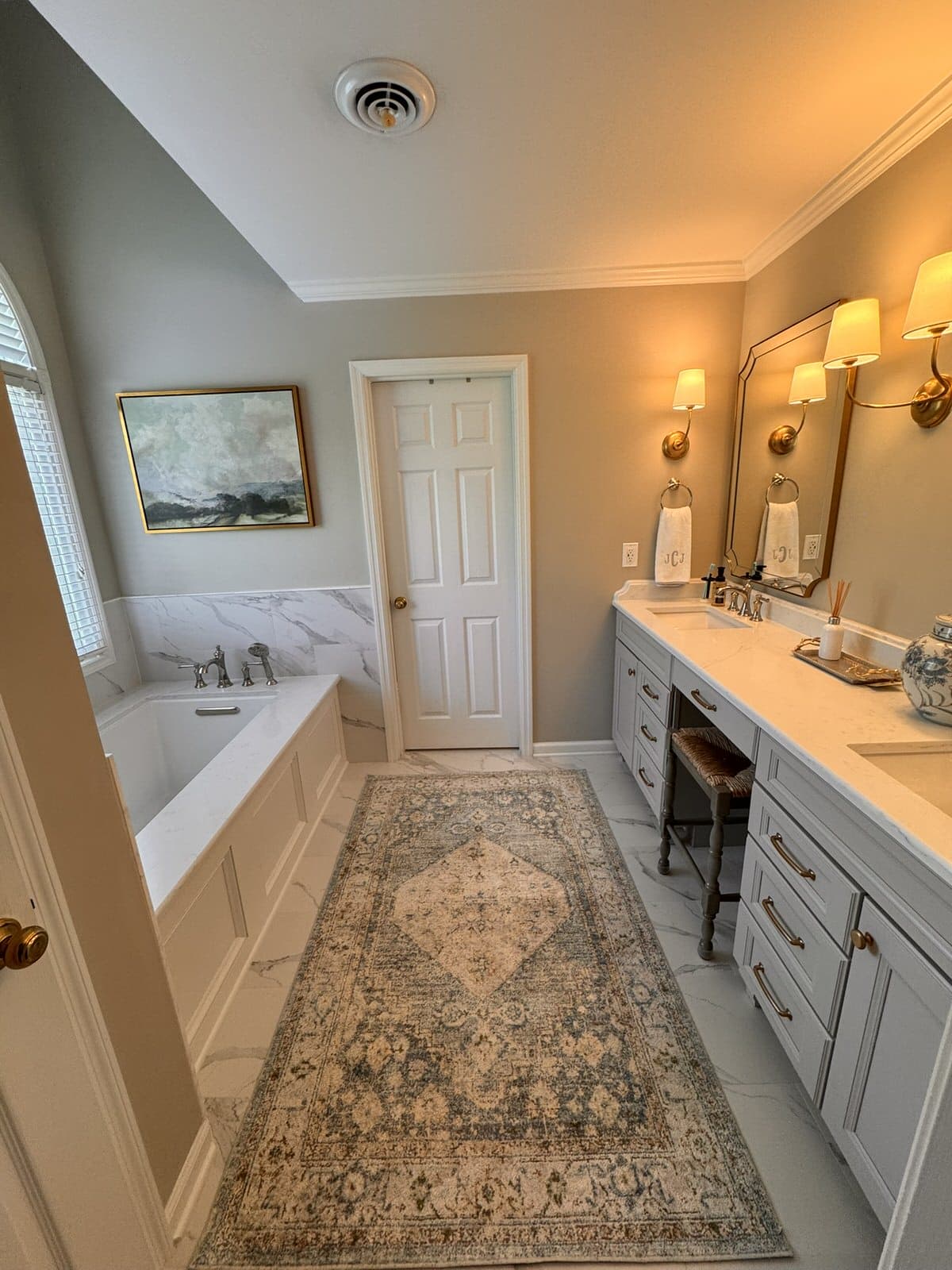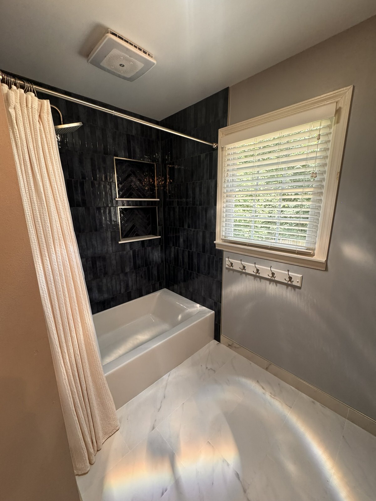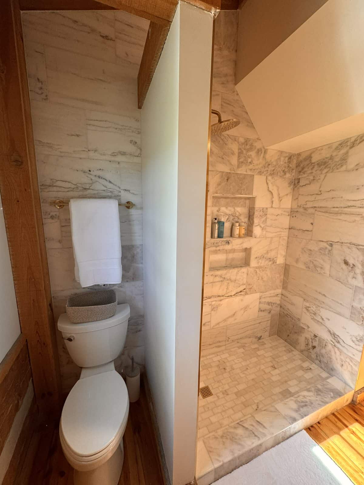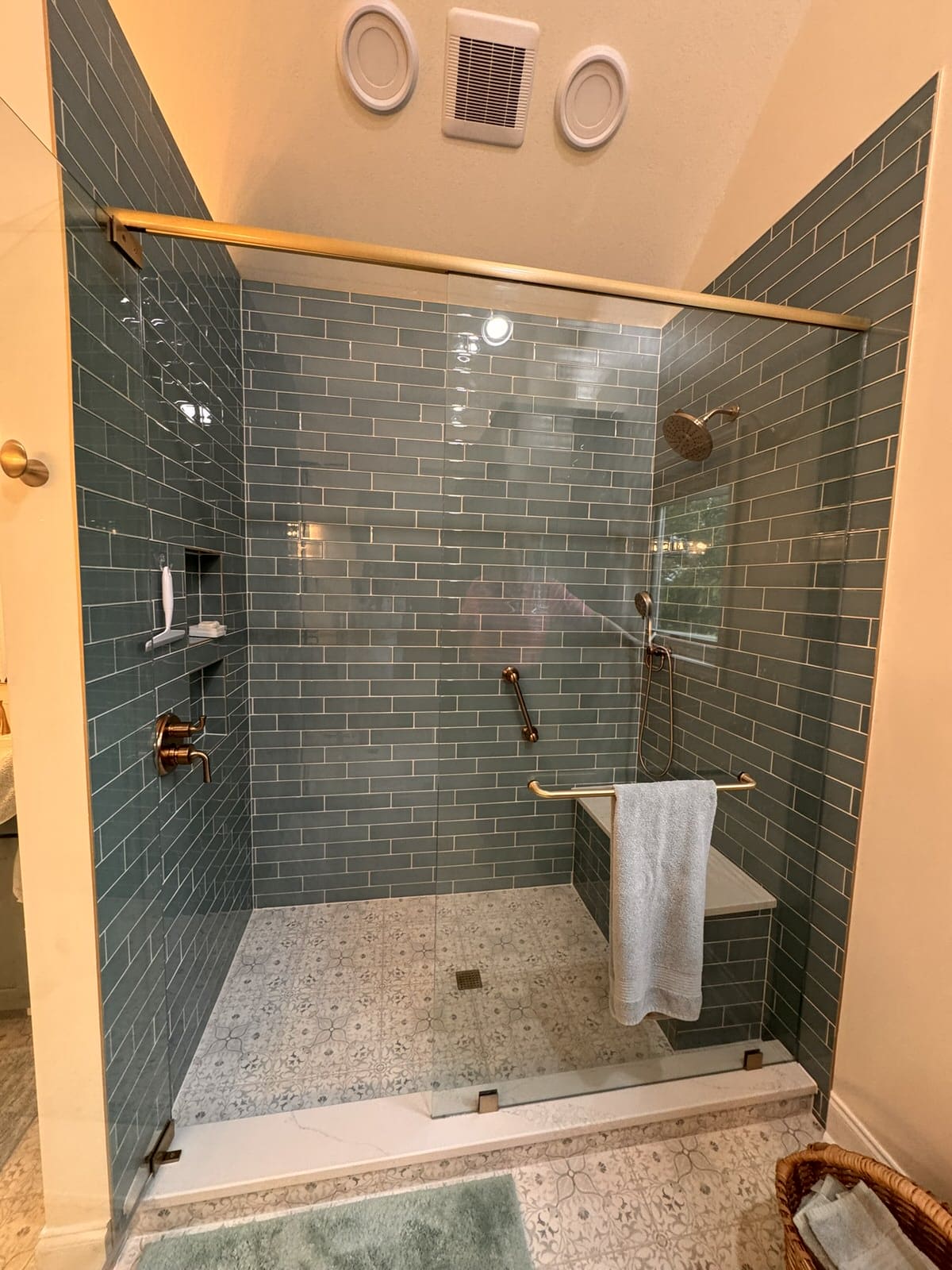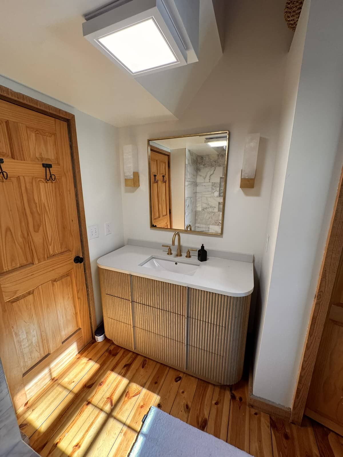 They transformed a 60-year-old moldy cave of a bathroom with a rotten floor to a luxurious and modern oasis. The entire team has great ideas and are very creative. The design choices included a floating vanity, pocket door, and removing a useless wall to make a tiny bathroom seem a lot larger.